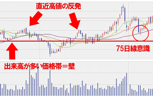 - 一定水準(壁)に到達すると株価が反転するが値幅調整や日柄調整によってやがて消滅
