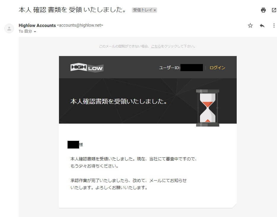 まずは、送られてきたメールのユーザーID横の「ログイン」をクリックします。するとユーザーIDとパスワードの入力画面が出てきます。その入力欄へメールに記載されているユーザーIDと口座開設のとき設定したパスワードを入力して、ログインボタンをクリックします。