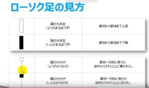 ローソク足にはいろいろな種類があり動画を元に一例をあげると