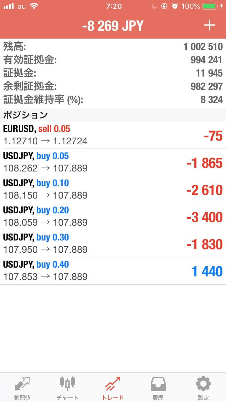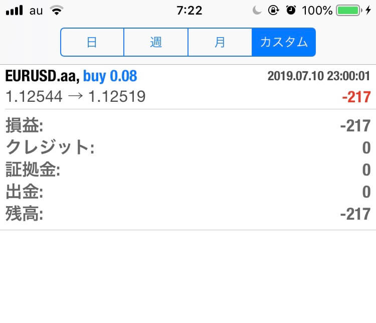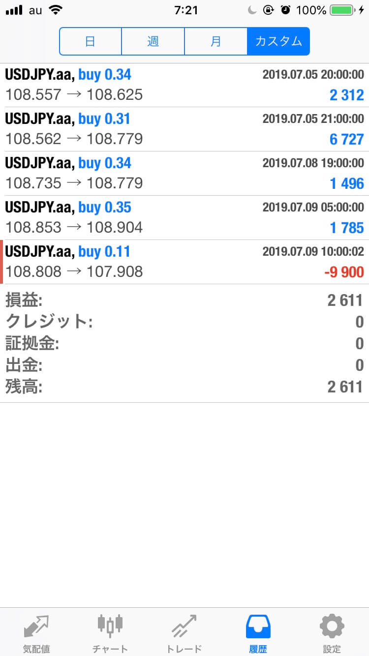 資金:100万円 初期ロット数0.01スタート ⇒ 7月10日から0.05スタート