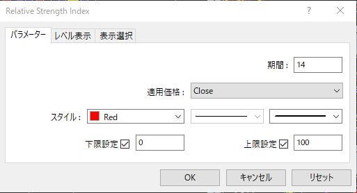 RSIは相場を視覚的にみれるので、非常にわかりやすいですね。続いてはRSIの設定方法についての確認です。