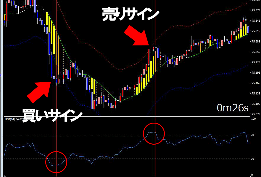 また、RSI単体では騙しサインが多いそのため注意が必要です。RSIだけで売り買い判断をしないようにしてください。