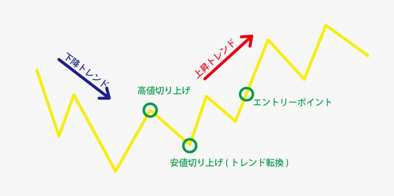 このトレンドを判断し、そのタイミングで相場に入り、注文を発注する時期を「 エントリーポイント 」といいます。実は、その相場の見極め方こそ、FXで安定して勝つための大きな要素であり、極意といっても過言ではないのです。